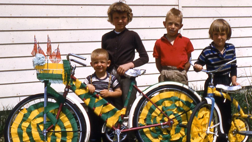 When was the last time (or ever) you saw something like this? Years ago, in days of old, when magic filled the air, it was a common occurrence in our Winnipeg neighbourhood to deck out your bikes to parade around the streets in a colourful flotilla. Tell that to kids today, they’ll wouldn’t believe you. Dig the ears on 9 year-old Tommy.